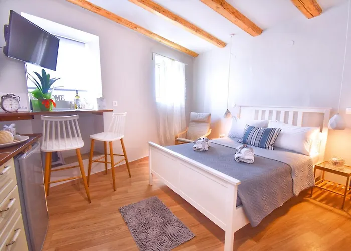 Mouragia Seaside Ground Floor Studio ferielejlighed ligger i centrum af Corfu, nær Admiral Ushakov Memorial. Denne 1 værelses indkvartering har også et udstyret køkken og 1 badeværelser.